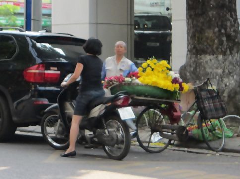 自転車でお花を売っているおじさんの写真ですが