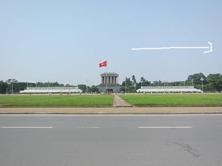 ハノイにある ホーチミン廟を→の方向に歩いていくと