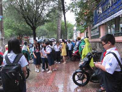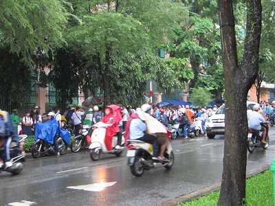 戦争証跡博物館を出ると 歩道に人だかりが。
