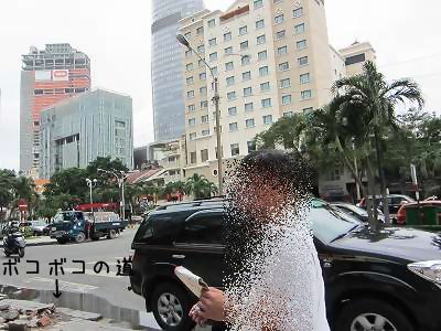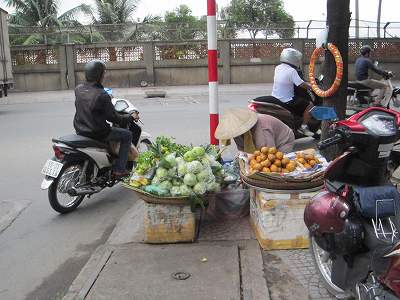 この気さくな人達は 歩道をバイクでブイブイ走っているので